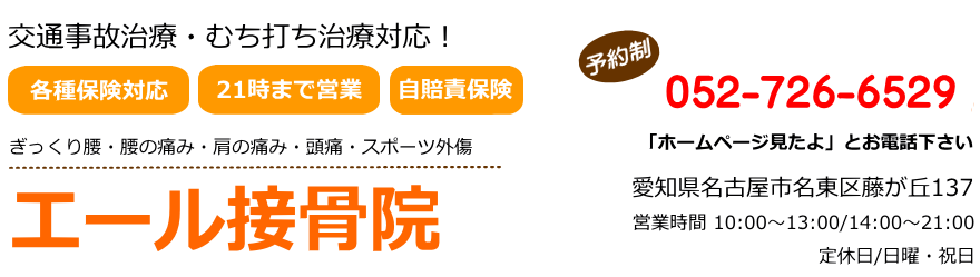 【名古屋市名東区藤が丘で整骨院なら、交通事故治療対応】エール接骨院